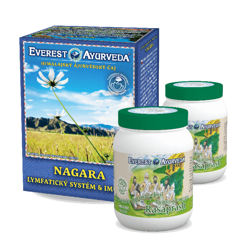 Himálajský ájurvédský čaj Nagara: 1 ks, ájurvédský nutriční elixír Rasaprash: 2 ks