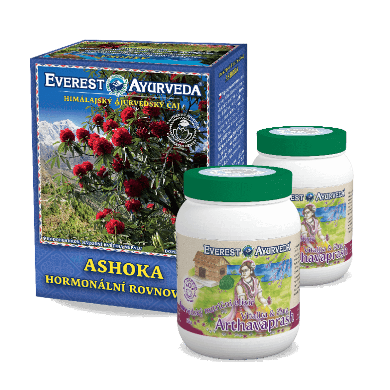 Himálajský ájurvédský čaj Ashoka: 1 ks, ájurvédský nutriční elixír Arthavaprash: 2 ks