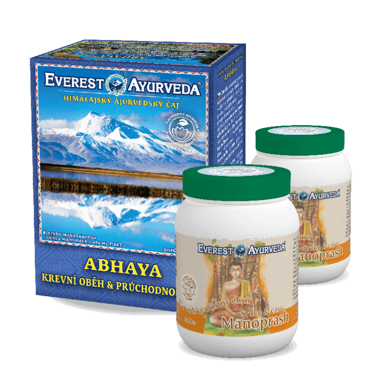Himálajský ájurvédský čaj Abhaya: 1 ks, ájurvédský očistný elixír Manoprash: 2 ks