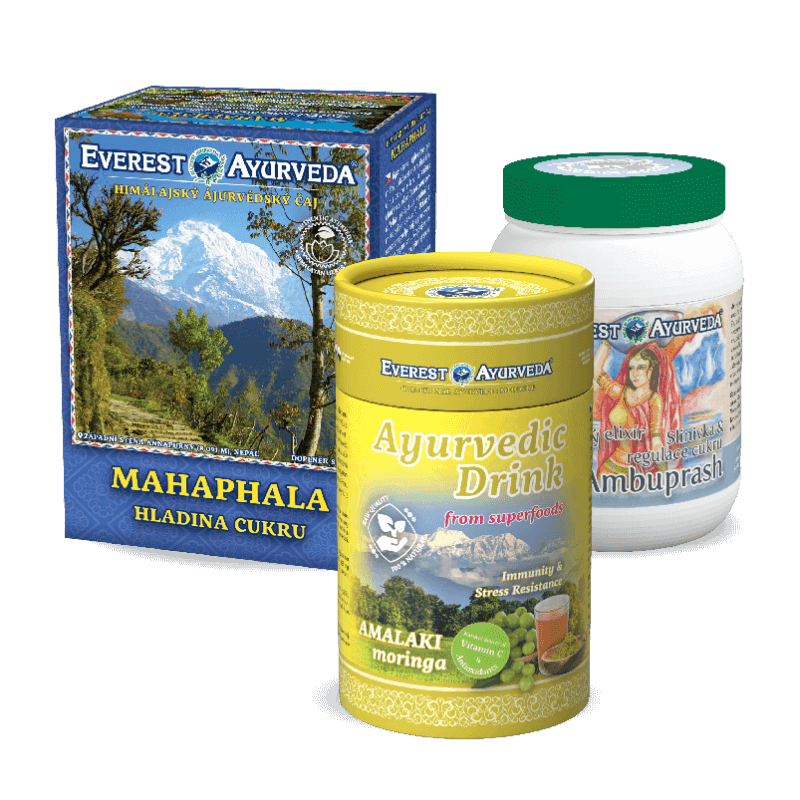 Himálajský ájurvédský čaj Mahaphala: 1 ks, ájurvédský očistný elixír Ambuprash: 1 ks, Amalaki nápoj Moringa: 1 ks